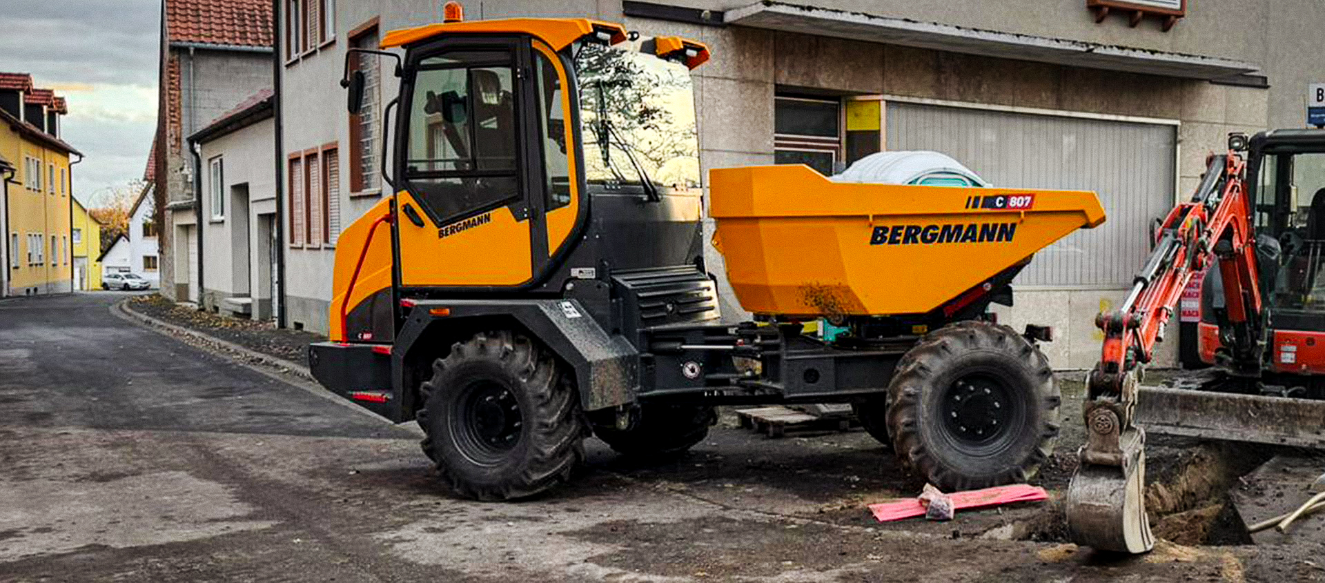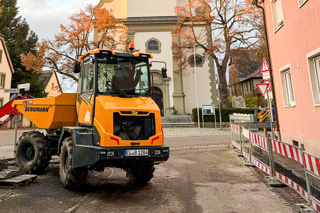 Beim Ausbau des Glasfasernetzes in Röthlein zeigt der Bergmann Kompaktdumper C807 bei der Hoch- und Tiefbau Müller GmbH jeden Tag, was er kann. Er transportiert zuverlässig den Aushub vom Baustellenbereich zum rund 500 Meter entfernten Lagerplatz. „Das spart uns jede Menge Zeit und Nerven, weil wir uns auf die eigentlichen Arbeiten konzentrieren können, ohne ständig überlegen zu müssen, wie der Transport klappt.“