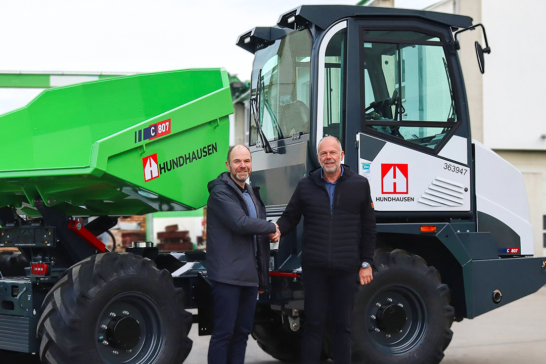 Besonders bemerkenswert: Es ist bereits der sechste Bergmann-Dumper, den die Hundhausen-Unternehmensgruppe in Betrieb nimmt. Das zeigt das Vertrauen, das Kunde, Händler und Hersteller über viele Jahre hinweg aufgebaut haben. Die Sonderlackierung wurde direkt im Werk von Bergmann umgesetzt – ein gelungenes Beispiel dafür, wie enge Zusammenarbeit individuelle Wünsche optimal realisiert.